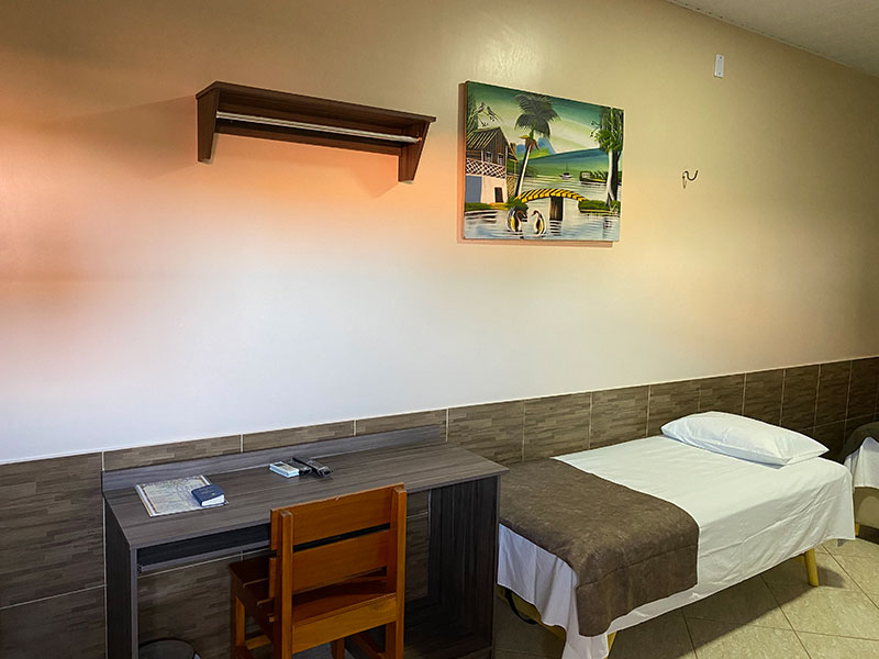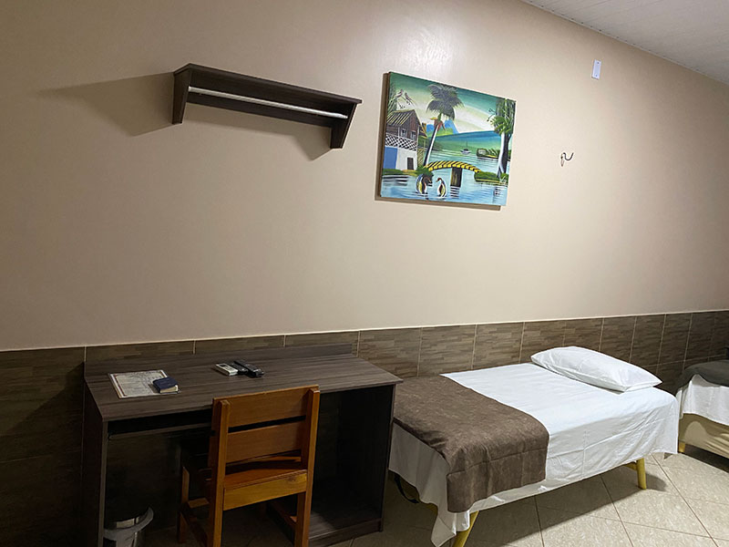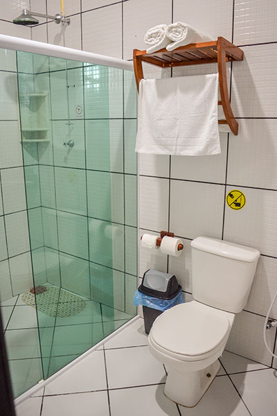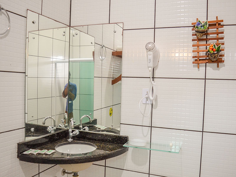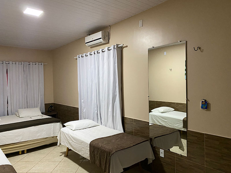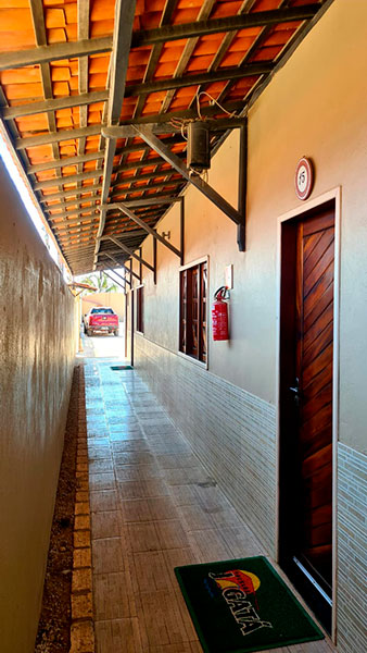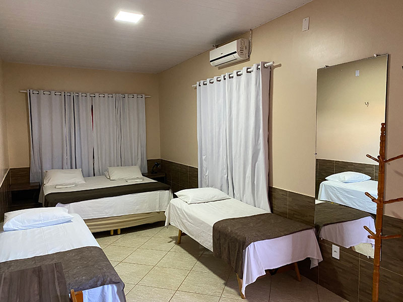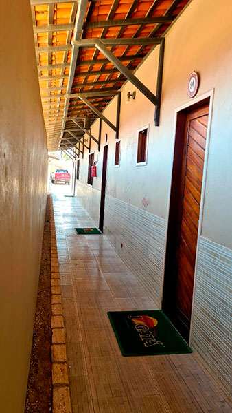 Apartamento no corredor de traz, 01 Cama de casal Box King ou 2 Camas articuladas solteira(cama extra), Ar Split, TV de LED 32", Frigobar(vazio), Secador de cabelo e Banheiro privativo com ducha de aquecimento solar.